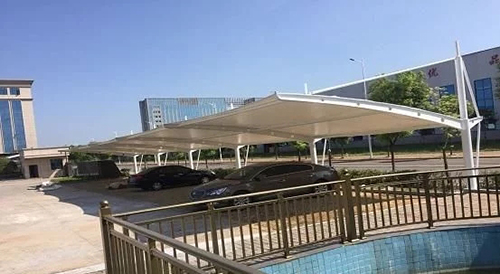 第三、膜結構車棚的表面有防紫外線的共擠層,可防止太陽紫外線引起的樹脂疲勞變黃。膜結構車棚表面共擠層具有化學吸收紫外線并轉化為可見光。